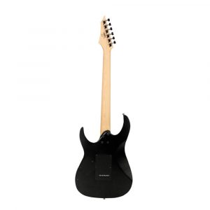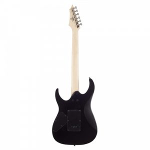 Euphonycart Present Cort X100 OPBK Electric Guitar. Electric guitar from X Series. Guitar features meranti body in open pore finish and hardmaple neck. Scale length is 648 mm. Jatoba fingerboard with 24 frets, 400 mm radius and nut. Black hardware include Die-Casting tuners and 6-Point Tremolo bridge. 2 x Powersound humbucker pickup and controls for 1 Volume, 1 Tone with 3 Way Selector Switch. Colour: Open pore black