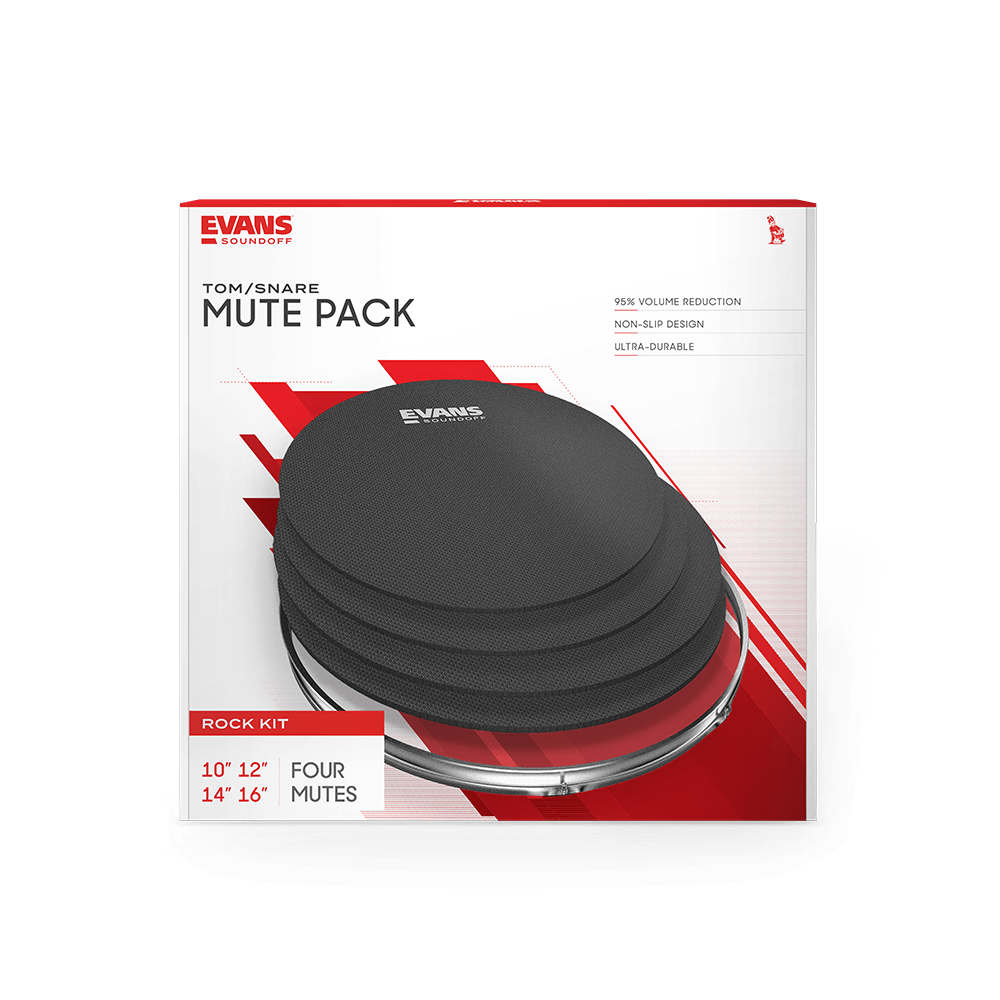The EVANS SoundOff Fusion Pack significantly reduces volume while you practice on your traditional drum set. SoundOff Mutes provide excellent stick response and are durable enough for the heaviest hitters. SoundOff Mutes are available for purchase in pre-configured packs or as individual mutes.