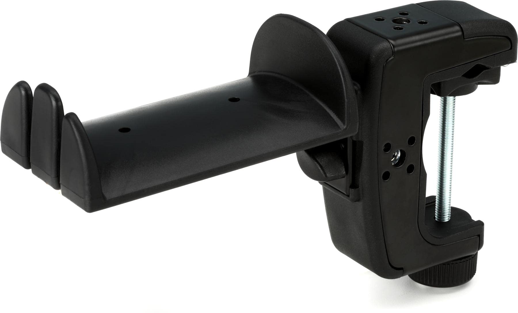 The new headphone holder including an innovative table clamp is a guaranteed secure and comfortable holder for your headphones. The holder protected with soft rubber can easily hold 2 standard headphone sets and 2 in-ear headphones can additionally be hung on the front. The headphone holder can be fixed in four different directions using the clamping screw. In addition the holder can be rotated from any position by 90°. The clamp can be extended from 0 to 48 mm allowing it to be mounted on a wide variety of tables. The stable metal construction with high quality plastic inserts guarantees a secure and strong attachment. The cleverly shaped clamping parts allow the clamp to be used on smooth surfaces and round-shaped tubes