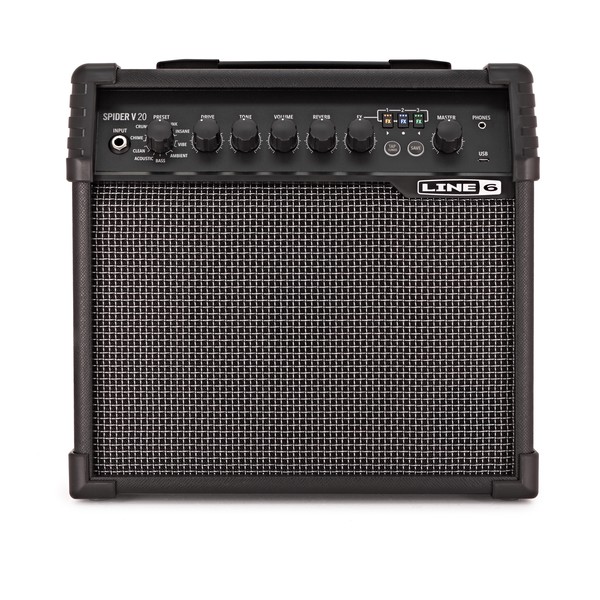 Euphonycart presents Line 6 Spider V 20 MK2. Upgrade your Line 6 Spider 5 Mk1 amp to the latest Mk2 model with a simple, downloadable software patch. This update will make it possible to switch between FRFR mode – which is great for acoustic guitars or audio device playback (e.g playing songs from your mobile phone) – and the classic amp speaker setting, providing the gritty ‘in-the-room’ air push of a standard guitar cab. All new Line 6 technology at an unbeatable price!