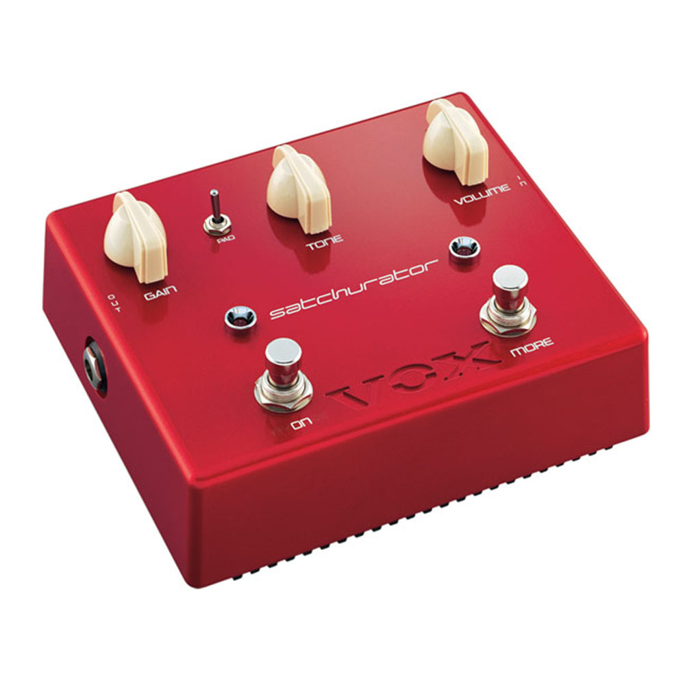 After almost a year of painstaking experimentation and road testing, Satriani and the VOX R&D team discovered the secrets to capturing the ultimate distortion tone in a modern-day effects pedal. The Vox Satchurator is capable of very high gain levels, but operates more quietly and musically than many other modern distortion pedals. It also preserves the tone and pick attack regardless of style, while providing distortions from subtly distorted blues tones through classic rock and shred.