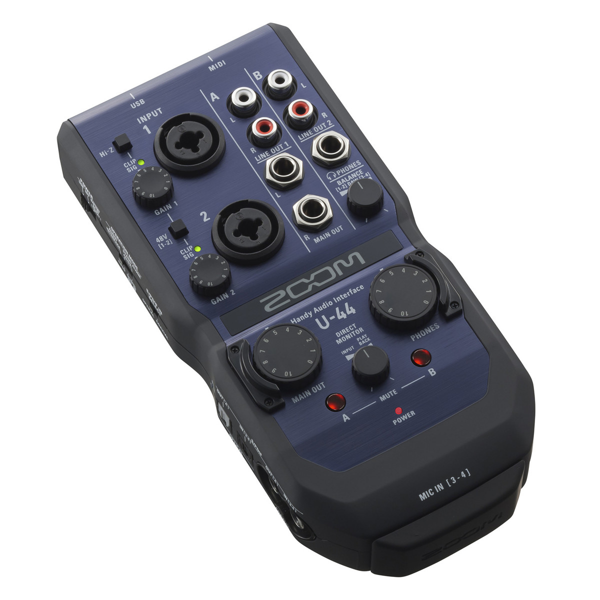 Inspired by our Zoom H-series recorders, the U-44 is equipped with high-performance, low-noise mic preamps that enable recording and playback at resolutions up to 24-bit/96 kHz. You can also use U-44 as a studio-quality headphone amp and listen to your favorite music in full fidelity.